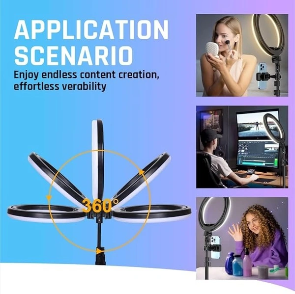 MMS TRADERS® 10 Inch Ring Light with Tripod Stand & Phone Holder, Dimmable LED Selfie Light for Live Stream Video/YouTube Video/Makeup, Ring Light with Stand Compatible with Android Mobile Phones Ring Flash (Black, White) .